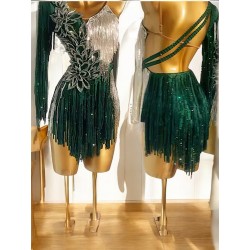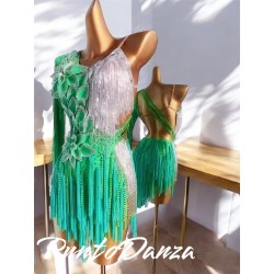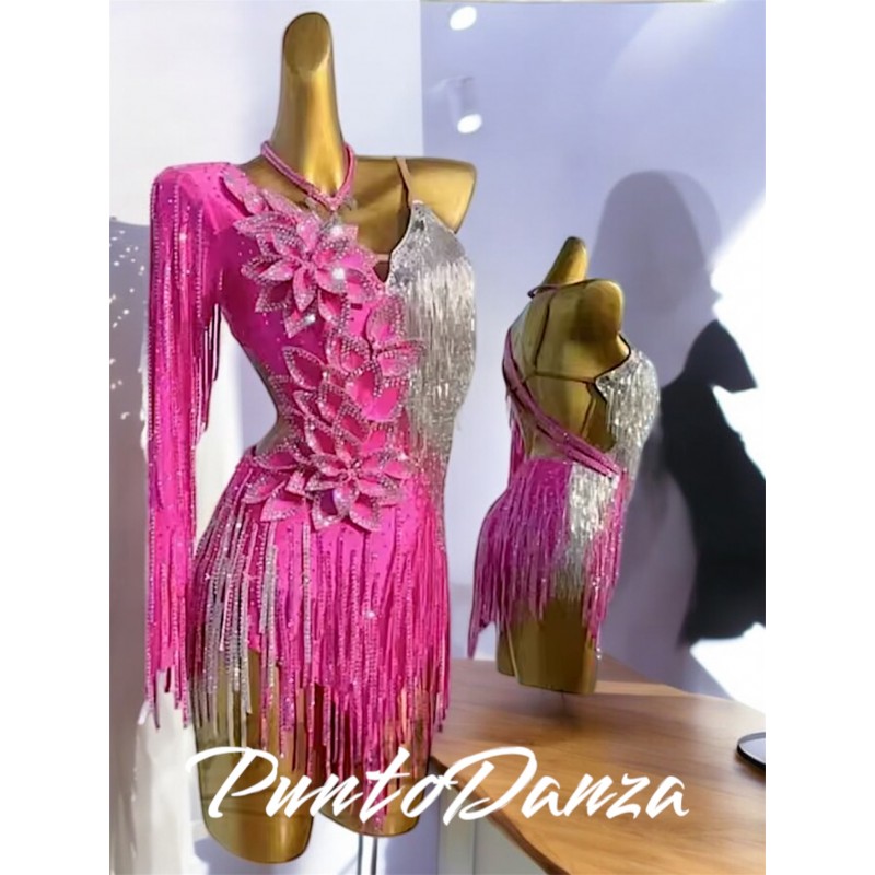 Questo abito da ballo elegante e sofisticato è un vero capolavoro, pensato per far brillare chi lo indossa sotto ogni riflettore. Realizzata con tessuti pregiati, la silhouette aderente esalta la figura, mentre gli strass di alta qualità, distribuiti su tutta la superficie del vestito, creano un effetto scintillante che cattura l'attenzione in ogni movimento.Ogni strass è applicato con cura artigianale, garantendo un gioco di luci che varia dal tono del cristallo, che riflette i riflessi della luce in maniera unica. Un abito che non solo fa da cornice alla bellezza di chi lo indossa, ma le dona una presenza magica e indimenticabile, perfetta per ogni evento di alta classe, ballo o competizione.